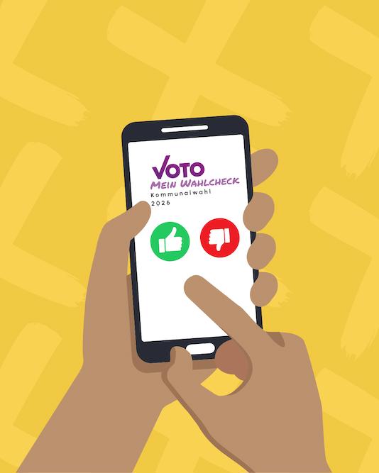 VOTO – Mein Wahlcheck ist eine unabhängige, digitale Plattform, die ähnlich wie der bekannte Wahl-O-Mat funktioniert, sich aber bewusst auf die kommunale Ebene konzentriert. Nutzerinnen beantworten rund 30 Thesen*zu zentralen kommunalen Themen wie Jugend und Ehrenamt; Verkehr und Mobilität; Umwelt und Energie; Wohnen und Soziales