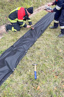 Konkret wurde bei der Übung ein ein Kilometer langer Zaun samt Tor errichtet. Ein Kilometer auch deshalb, weil die Fachleute in Sachen Seuchenbekämpfung anhand dessen den Personal- und Zeitbedarf hochrechnen können. „Im Ernstfall reden wir vielleicht über 20 oder 30 Kilometer Zaun“, führt Dr. Kurth vor Augen. Umzäunungen gelten nach den bisherigen Erfahrungen des zuständigen Staatsministeriums in Ergänzung mit anderen Bekämpfungsmaßnahmen als wichtiger Beitrag, die Weiterverbreitung der Seuche zu unterbinden.
