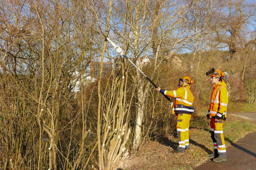 Von Mäharbeiten bis Lichtraumschnitt, von Grabenreinigung bis Deckenbauten – von Tag eins an sind Lehrlinge dabei, ergänzt Josef Finweg, Leiter der Bauhöfe. Zwar mag der Ausbildungsplan eine andere Reihenfolge vorgeben, die passe aber oft nicht zur Wirklichkeit. „Uns ist wichtig, dass sie alles lernen, was sie brauchen“, verdeutlicht er. Die Jungen finden´s gut: „Man wird gebraucht und gleich eingesetzt.“