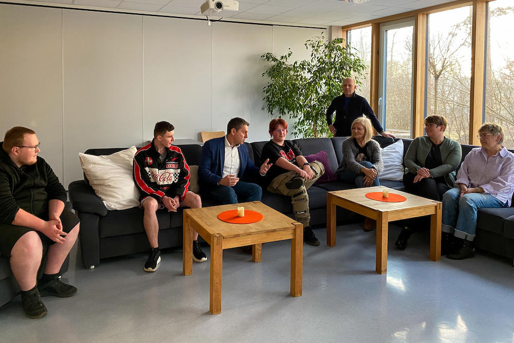 Mit dieser Frage werden sie sicher nicht gerechnet haben. Wer denn im Aufenthaltsraum „Herr der Fernbedienung“ sei, will Landrat Ben Schwarz von den jungen Männern wissen, die im Schülerwohnheim ein Zuhause auf Zeit gefunden haben. Doch nicht nur die angehenden Berufskraftfahrer, die bei seinem Besuch gerade Blockunterricht haben, sehen sich mit einem ungewöhnlichen Interview konfrontiert, auch Leiterin Ottilie Tubel-Wesemeyer.