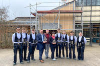 Auch für ihren Richtspruch erhielten die angehenden Zimmerer vom Landrat ein großes Kompliment. „Ihr habt einen alten Brauch sehr gut umgesetzt“ – die nächste Blaupause…