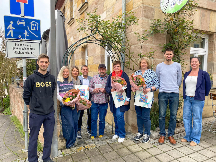 Mit Abenberg „verbandelt“ ist auch Frau Meier. 25 Jahre hat sie die Klöppelschule verantwortet, ist aber vor Kurzem in den Ruhestand gegangen. Sie war kurzfristig verhindert. Frau Bartels (verhindert) wurde gleichfalls für ein Vierteljahrhundert beim Landkreis geehrt. Nach Stationen im sozialen und Gesundheitsbereich ist sie nun im Verkehrswesen tätig. Wie Herr Aumüller gratulierte ihr Ben Schwarz eigentlich für 26 Jahre – beide konnten bei der vorausgegangenen Feierstunde nicht dabei sein. „Aber so haben Sie wenigstens was zu erzählen“, kommentierte er augenzwinkernd. Aumüller hat es über Nürnberg, Rosenheim und Eichstätt Ende 2022 ans Landratsamt Roth verschlagen.
