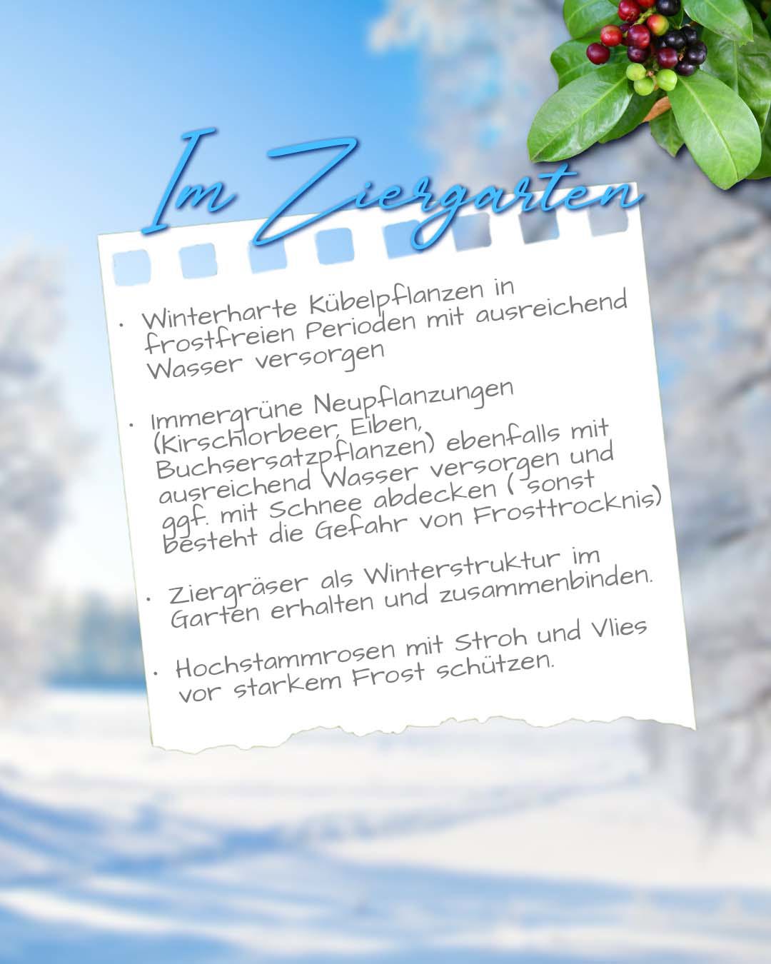 Vermeintlich ist im Winter im Garten nicht mehr viel zu tun, aber ein paar Arbeiten sollten noch erledigt werden – alleine schon, um im Frühjahr einen guten Start hinzulegen!