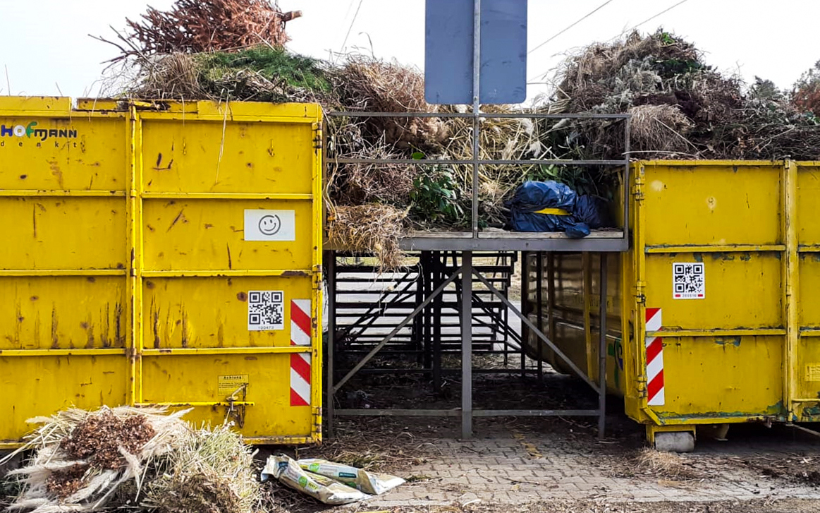 Das Grüngut wird weiterverarbeitet zu Kompost. In den Container dürfen ausschließlich Gartenabfälle, wie Strauchschnitt, Astwerk (keine Wurzelstöcke), Rasen- und Pflanzenschnitt, Laub und Blumen. Sträucher, Äste und Bäume müssen unbedingt in kleinere Stücke zerlegt werden. Auf keinen Fall dürfen Einstreu aus Kleintierhaltung, Obst- und Gemüsereste, Plastiktüten und sonstige Abfälle entsorgt werden. Zuwiderhandlungen können mit einer Ordnungswidrigkeit geahndet werden.
