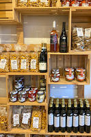 Zum „stimmigen Konzept“, so die Besucher-Bewertung, passen die italienischen Spezialitäten, die die Franciosos zur Abrundung im Sortiment haben und tragen sehr zum wunderbaren Ambiente in dem alten Sandsteingebäude bei. Auch sie tragen eine besondere Handschrift. Das Gebäck liefert eine kleine Handwerksbäckerei aus der Heimatstadt von Giuseppes Frau Lia, Monte Sant’Angelo, die es auf Bestellung herstellt. Tomaten(soßen) und Co. im Glas stammen von einem kleinen Familienbetrieb aus Apulien.