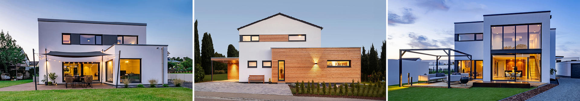 Dass LUXHAUS im Vergleich zu manch anderem Unternehmen relativ gut durch die Krise gekommen ist, liegt maßgeblich an der Positionierung. Hochwertige, individuell nach Architektenentwurf geplante Holzfertighäuser spielen zwangsläufig im höherpreisigen Segment. In diesem war der Einbruch an Neubauten nicht ganz so gravierend, berichtet das Führungstrio. Geholfen habe auch die Aktion „Jubiläumshaus“, die aufgrund der guten Nachfrage unter anderem Namen in die Verlängerung gehen soll. Dahinter steckt ein 20-Punkte-System, mit dessen Hilfe Bauherren sparen können. Beispiel: Liegen beide Bäder im Haus übereinander, wird´s günstiger.