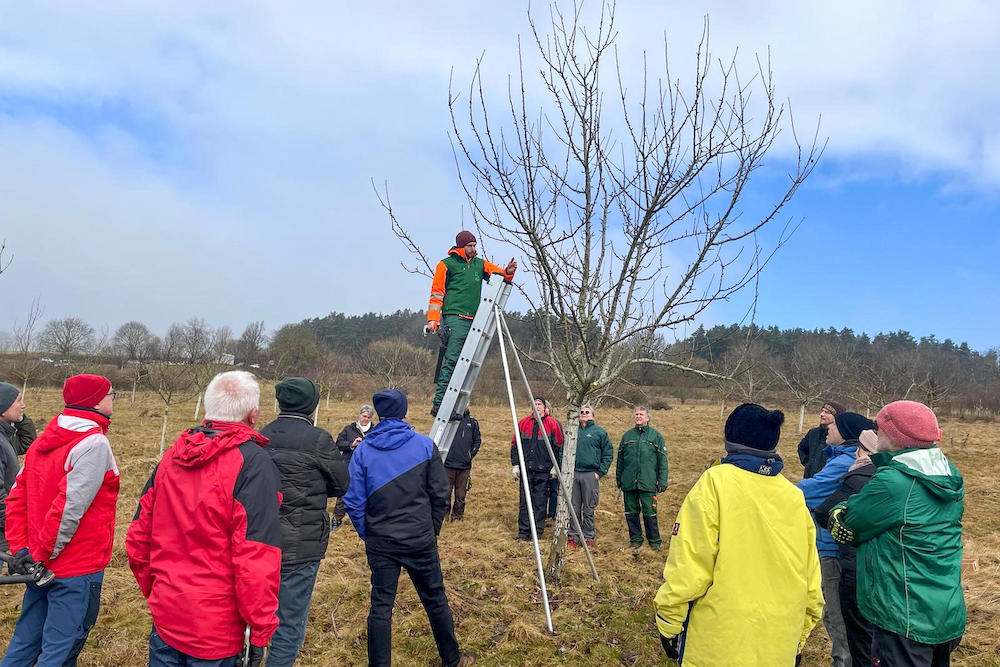 Los geht es bei den Co-Veranstaltungen mit dem jeweils örtlichen Obst- und Gartenbauverein (OGV) jeweils um 9 Uhr, das Ende ist gegen 13 Uhr geplant. Auch die inhaltliche Abfolge ist ähnlich: Zunächst werden im theoretischen Teil Basiswissen zur Obstbaumpflege vermittelt und die zur Praxis nötigen Grundlagen gelegt, welche anschließend vertieft werden. „Muss dieser Ast weg und wie setze ich die Säge richtig an?, Wann darf und sollte ich zurückschneiden?“. Das sind sie vielleicht gängigsten Fragen, auf die Antworten gegeben werden. Auch das Thema Lebensraum wird im rund einstündigen Theorieteil beleuchtet.