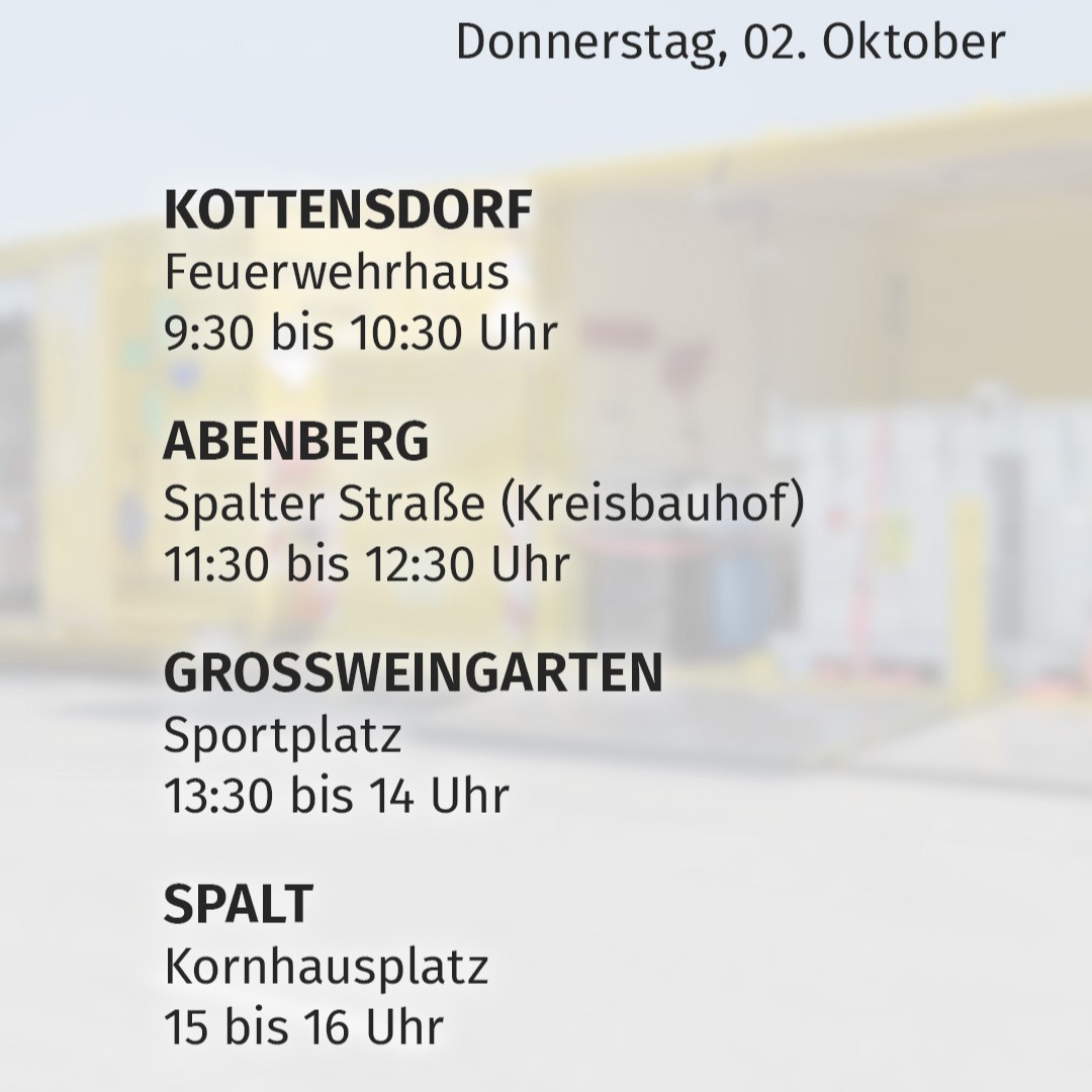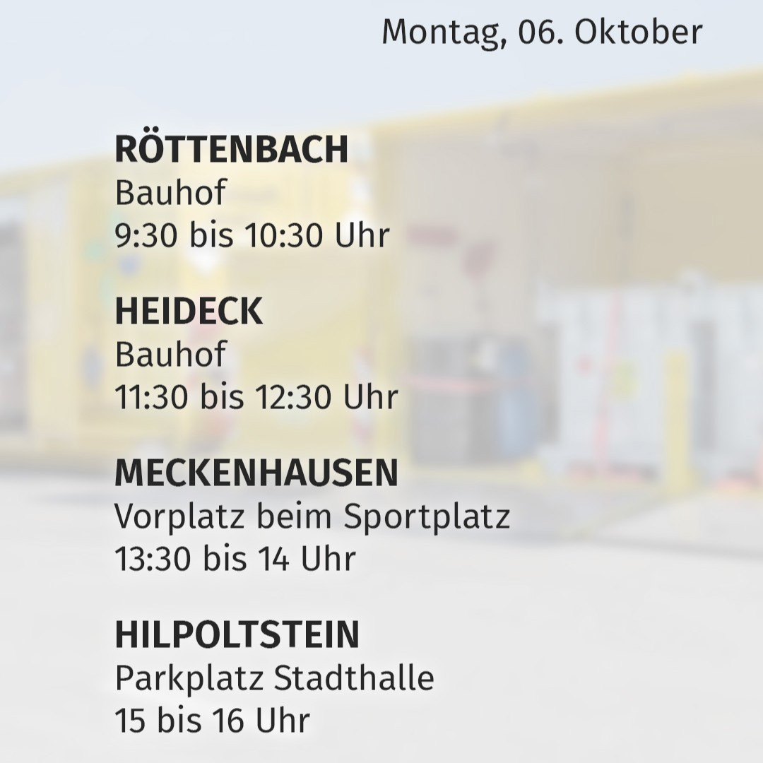 Vom 1. bis 8. Oktober unterwegs, um umweltschädliche Stoffe aus den Haushalten einzusammeln