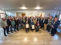 „Die heimatkundlichen Streifzüge könnten ohne ihn nicht auskommen“, leitete Ben Schwarz zu Robert Unterburger über. Der Allersberger und frühere Lehrer sei seit vier Jahrzehnten unermüdlicher Heimatkundler, Publizist und Autor. Erst kürzlich veröffentlichte der 70-Jährige den neunten Band seiner Geschichtsreihe „Im Sauseschritt durch die Jahrhunderte“. Ab dem Jahr 2000 war Unterburger Kreisgeschichtspfleger, ab 2003 zusätzlich Kreisarchivpfleger. Letzteres Amt musste er 2023 krankheitsbedingt schweren Herzens abgeben.