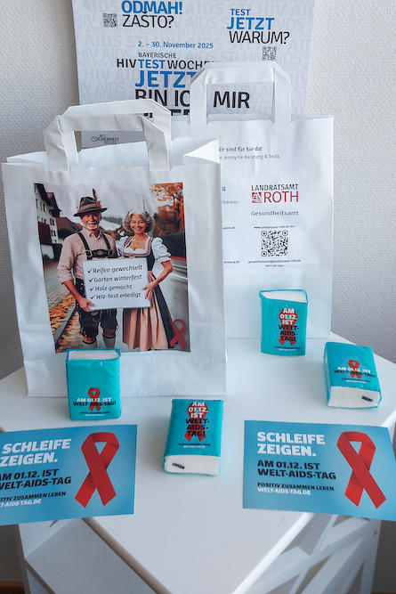 Im Vorfeld wurden 2000 Papiertragetaschen an teilnehmende Apotheken im Landkreis verteilt, um wieder stärker auf Thema aufmerksam zu machen. Die Taschen werden – wie in Apotheken üblich – an Kundinnen und Kunden ausgegeben, um Medikamente zu verpacken. Die Rückmeldung der Apotheken ist bereits jetzt überaus positiv. Einige merkten an, dass sie eine zunehmende Nachlässigkeit im Umgang mit sexuell übertragbaren Krankheiten feststellen würden, da die Nachfrage nach der „Pille danach“ und den HIV-Schnelltests merklich gestiegen sei. Auch die kostenlosen und anonymen Testmöglichkeiten im Gesundheitsamt war vielen nicht bekannt. „Das unterstreicht die Notwendigkeit der Aktion“, betont Dr. Stefan Schmitzer, Leiter des Gesundheitsamtes.