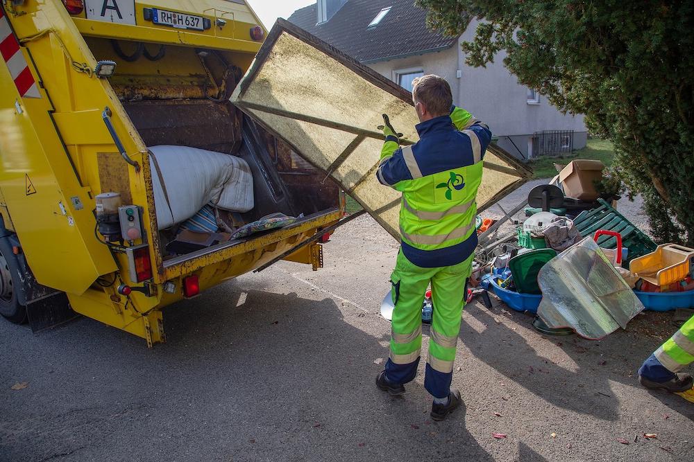 - Wegen der Wertstofftrennung wird der Sperrmüll am Abfuhrtag mit bis zu vier verschiedenen Fahrzeugen abgeholt, die nicht gleichzeitig, sondern zeitversetzt kommen können.