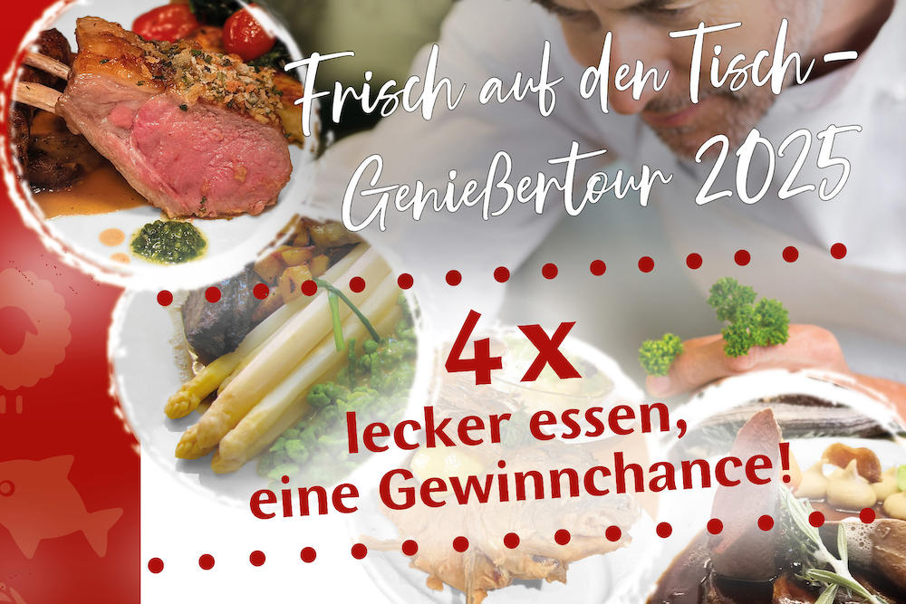 - Kaufen Sie in einer der 40 teilnehmenden Gaststätten ein jeweiliges Gericht aus den Genusswochen (Lamm, Spargel, Fisch oder Wild). Jeder Besuch, verbunden mit einem Verzehr, wird belohnt.